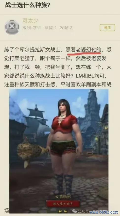 结构化配资 魔兽老哥照着老婆捏幻化!被老婆发现暴打删号!